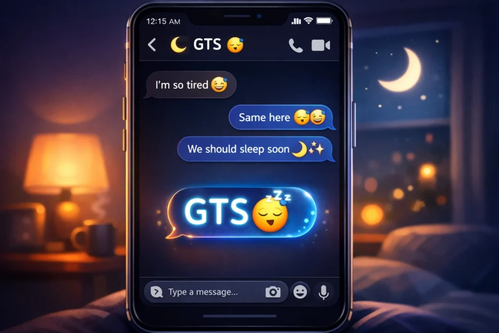 GTS in text usually means “Go To Sleep.” It’s commonly used in casual conversations, especially late at night, to tell someone to rest. Depending on the tone, it can be friendly, caring, or slightly dismissive.